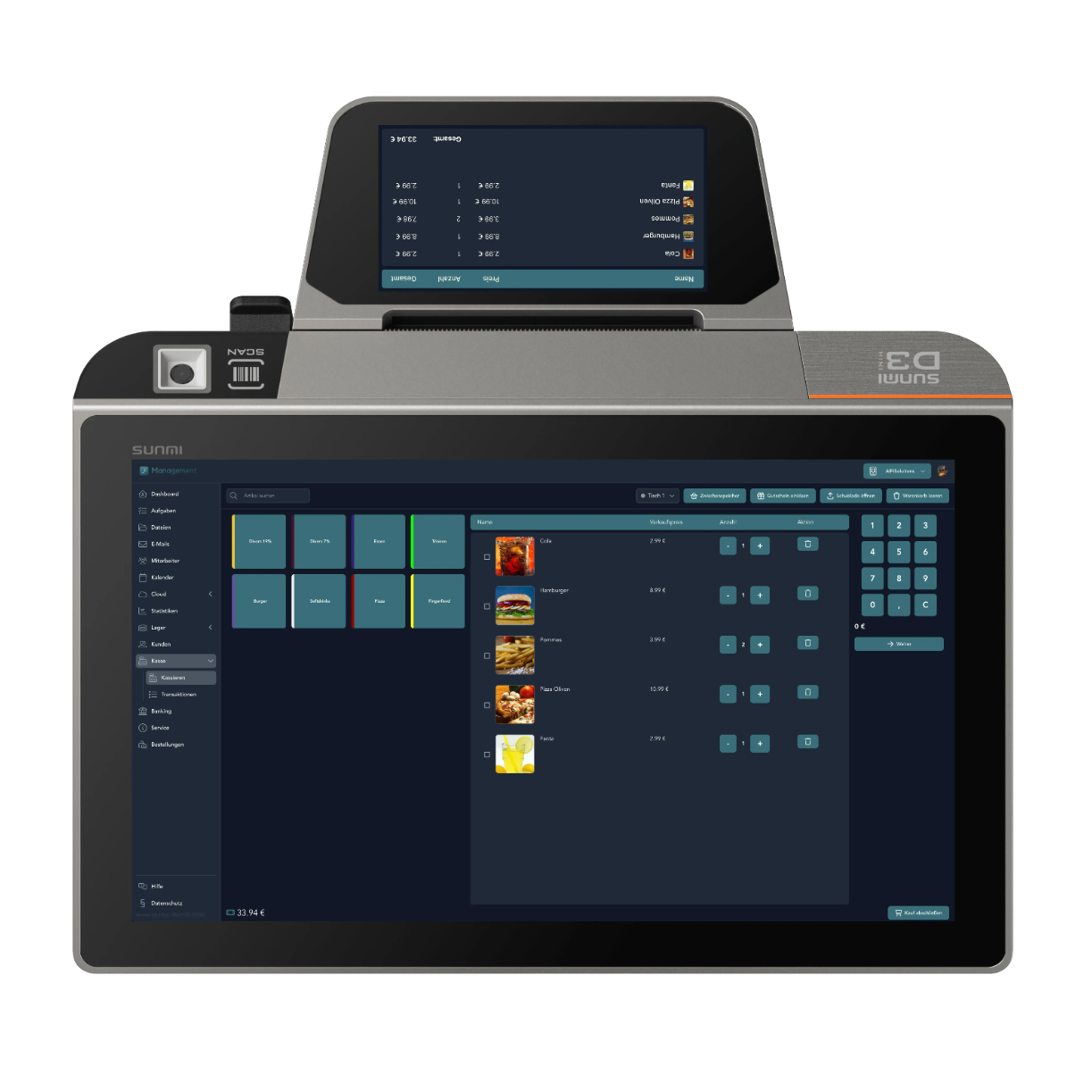 Die Sunmi D3 Mini ist ein kompaktes Android-Kassensystem mit integriertem 80-mm Belegdrucker und einem 2,4″ Kundendisplay. Perfekt für kleine Läden, Cafés und Gastronomiebetriebe, die wenig Platz haben, aber ein vollwertiges Kassensystem benötigen. Mit AlFiManagement ist sie sofort einsatzbereit und flexibel erweiterbar.